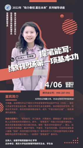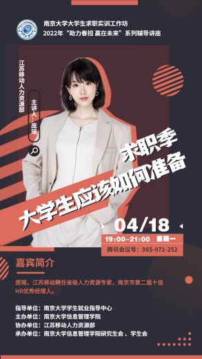 3月下旬以来,学院党委策划一系列“助力春招 赢在未来”系列辅导讲座,学院兼职辅导员、校党办王维嘉老师及多位优秀校友、名企HR相继线上开讲或模拟面试。学院党委组建待就业本科生帮扶专班,分管副院长邓三鸿,系主任张志强、胡广伟、康乐乐,以及颜祥林、石进、王鹏涛、司徒凌云、闵超等专业教师,组建班主任、德育导师和辅导员协同队伍,从修改简历、生涯咨询到面试指导,积极投入结对帮扶工作。其中绝大多数为党员教师。让人欣慰的是,迄今已有多位同学顺利拿到offer或积极调整就业心态。