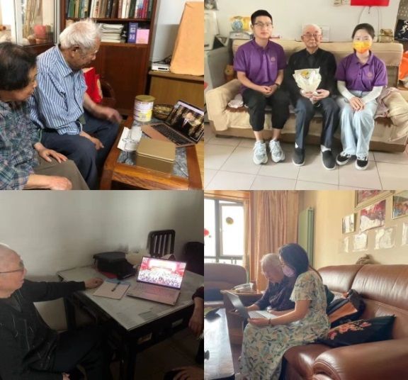 同学们的热情也温暖着老教师们。“谢谢两位热心的同学,给我带来了活力,(让我)回忆起了年轻时的日子,真开心!”83岁的宋满英老师在与同学们共同观看南京大学庆祝建校120周年大会后高兴得说。周炳生老师、马俊南老师和钱志勤老师也纷纷为同学们点赞,为与同学们共度校庆感到由衷的高兴。卧病休息的徐进鸿老师说:“对于一百天没出门的我来说,同学们带来了青春的活力。”而师生的合影在学院退休教师微信群、学院在职教工微信群里传开后,引发了老师们互致亲问候、共忆美好过往、共盼美好未来的热潮。