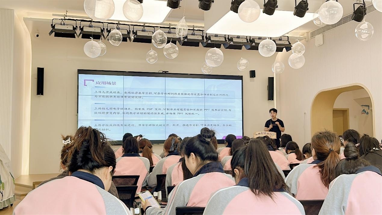 随后,主讲人聂圣昊就“专属知识库构建与 AI 助手开发”主题进行专业讲解,以深入浅出的方式阐专属释AI助手的典型应用场景及功能优势。他结合实际,现场演示从搭建专属知识库到训练个性化 AI 智能体助手的全流程操作,重点展示该技术在教学创新、公文撰写等场景中的具体应用。通过构建智能助手体系,可实现对幼儿园教学与管理工作的精准化、高效化、个性化赋能。