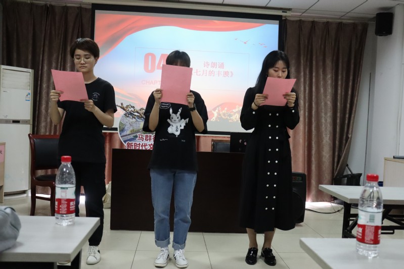 随后由出版专硕团支部的张也、黎梦雯、李玉同学为大家带来诗朗诵——《七月的丰腴》,她们用饱含深情的朗诵表达了对革命烈士的崇敬以及对祖国富强的期待。