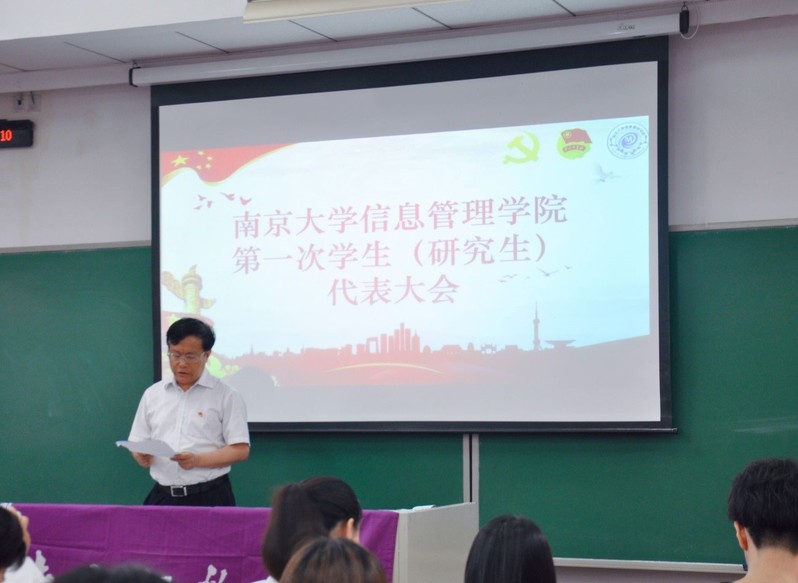 南京大学信息管理学院院长孙建军教授、南京大学学生会主席团成员周全同学、学院党委副书记罗萍老师、院长助理刘千里老师、团委书记李高杰老师及150余名学院学生、研究生代表出席了本次大会。