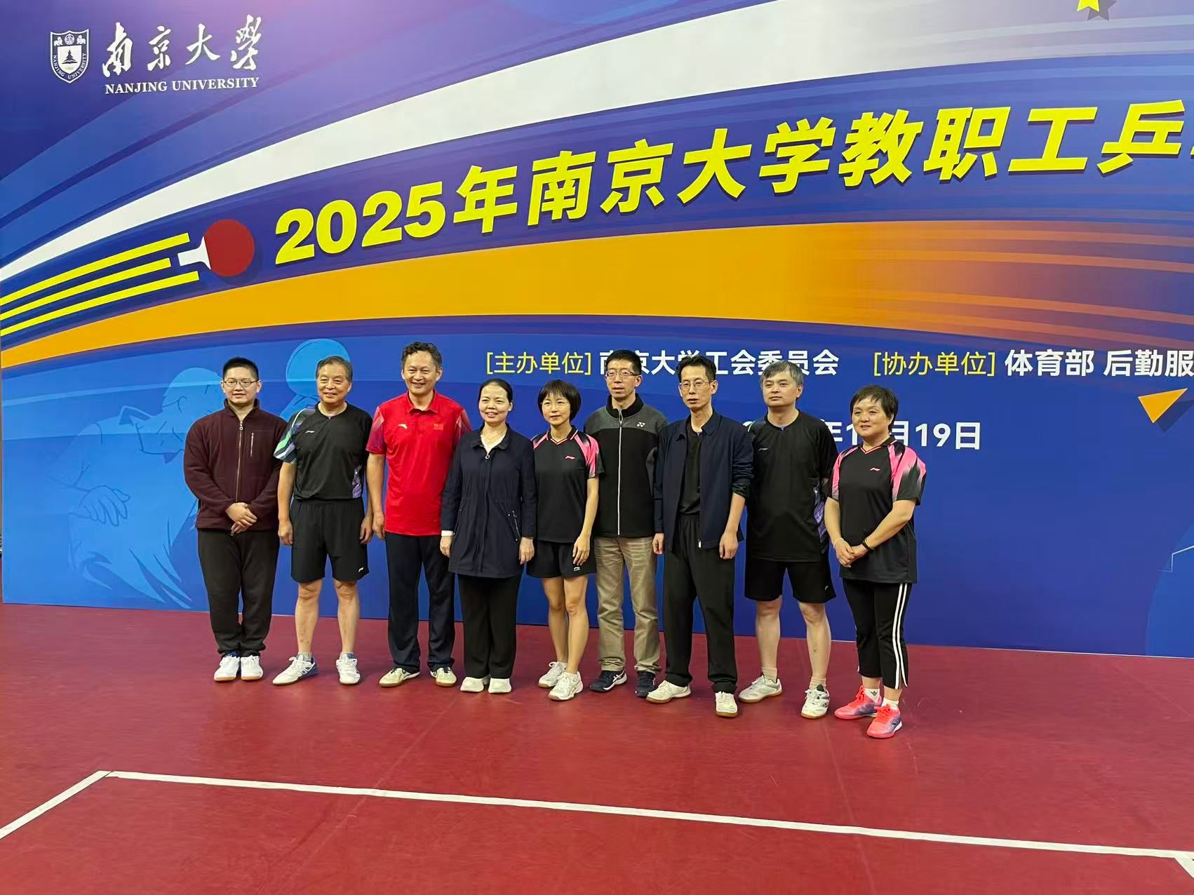 2025年10月19日,南京大学教职工乒乓球大赛在仙林校区方肇周体育馆圆满举行。信息管理学院与后勤集团联队以出色表现斩获亚军,继2024年获得季军后再创历史佳绩,实现"一年一台阶"的稳步提升。