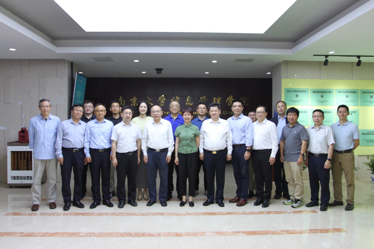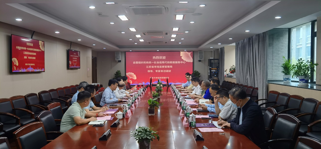 8月31日,全国组织机构统一社会信用代码数据服务中心党委书记、副主任马思宇,江苏省市场监督管理局一级巡视员冯新南一行围绕统一社会信用代码的政产学研赴南京大学调研,听取信息管理学院有关大数据与创新应用的汇报,江苏省市场监督管理局有关部门领导陪同。