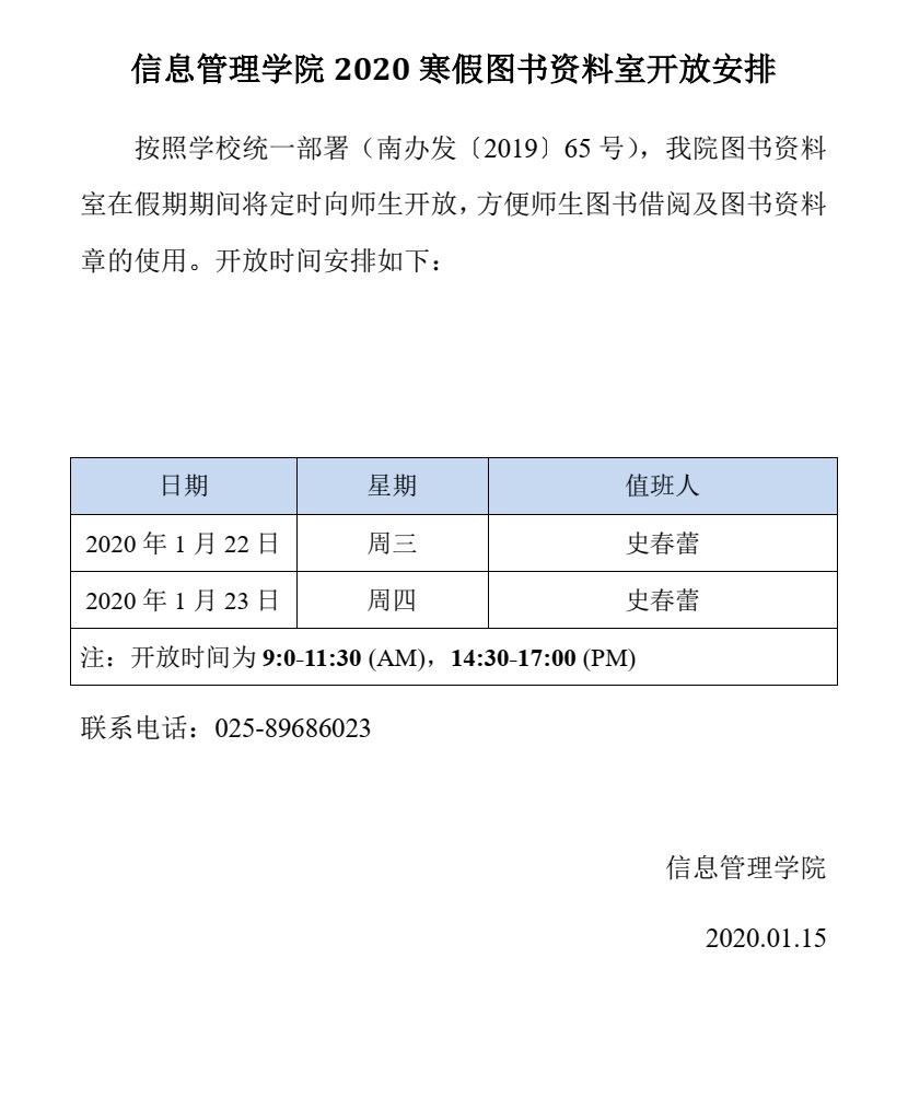 信息管理学院2020春季学期开学前值班计划(4月份)