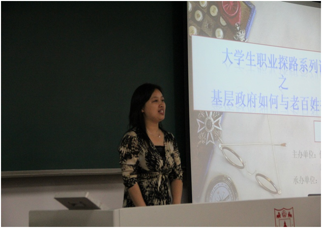 1010日晚形势与政策课由信息管理系党委副书记罗萍老师主持,并请来了南京市白下区洪武路街道马府街社区党委书记米晅,从基层独特的视角为大一新生们阐述了如何做人,特别是如何做好受老百姓欢迎的人民公仆