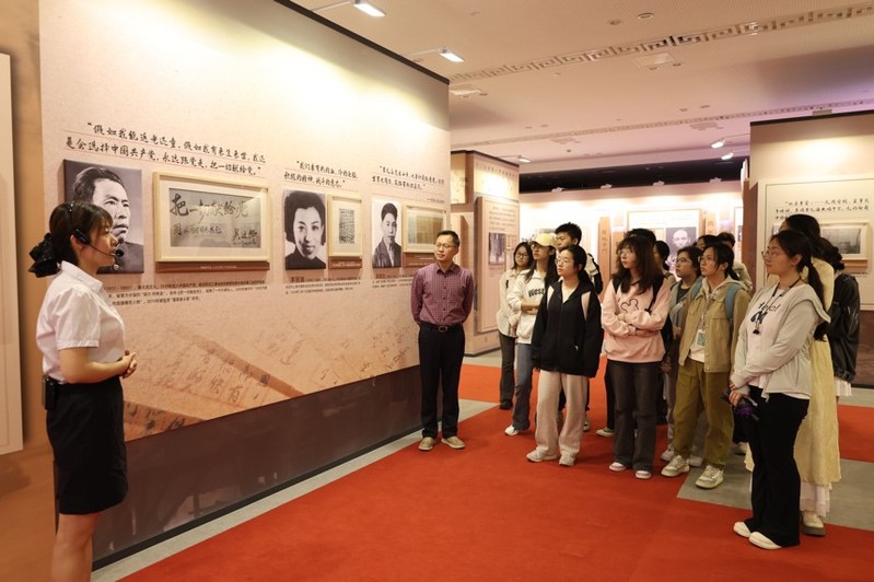 步入专题展厅,《书信家国 尺牍情深——弘扬伟大建党精神长三角档案联展》以大量珍贵家书为脉络,生动展现共产党人的初心使命。泛黄的信笺、朴实的字句让同学们驻足沉思,感受红色文化的力量与魅力。而《只要西藏人民需要——江苏早期援藏口述史料展》则通过口述档案展陈,再现上世纪江苏援藏干部不畏艰险困苦、不怕山高水长,扎根雪域,用青春和汗水为西藏繁荣发展贡献江苏力量的光辉历程的事迹。刘鸿浩在讲解中特别强调当代档案人记录时代印记的责任担当,对同学们给予殷切期望。