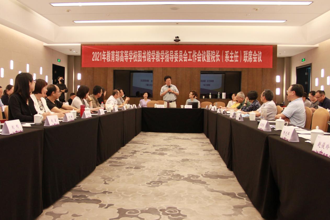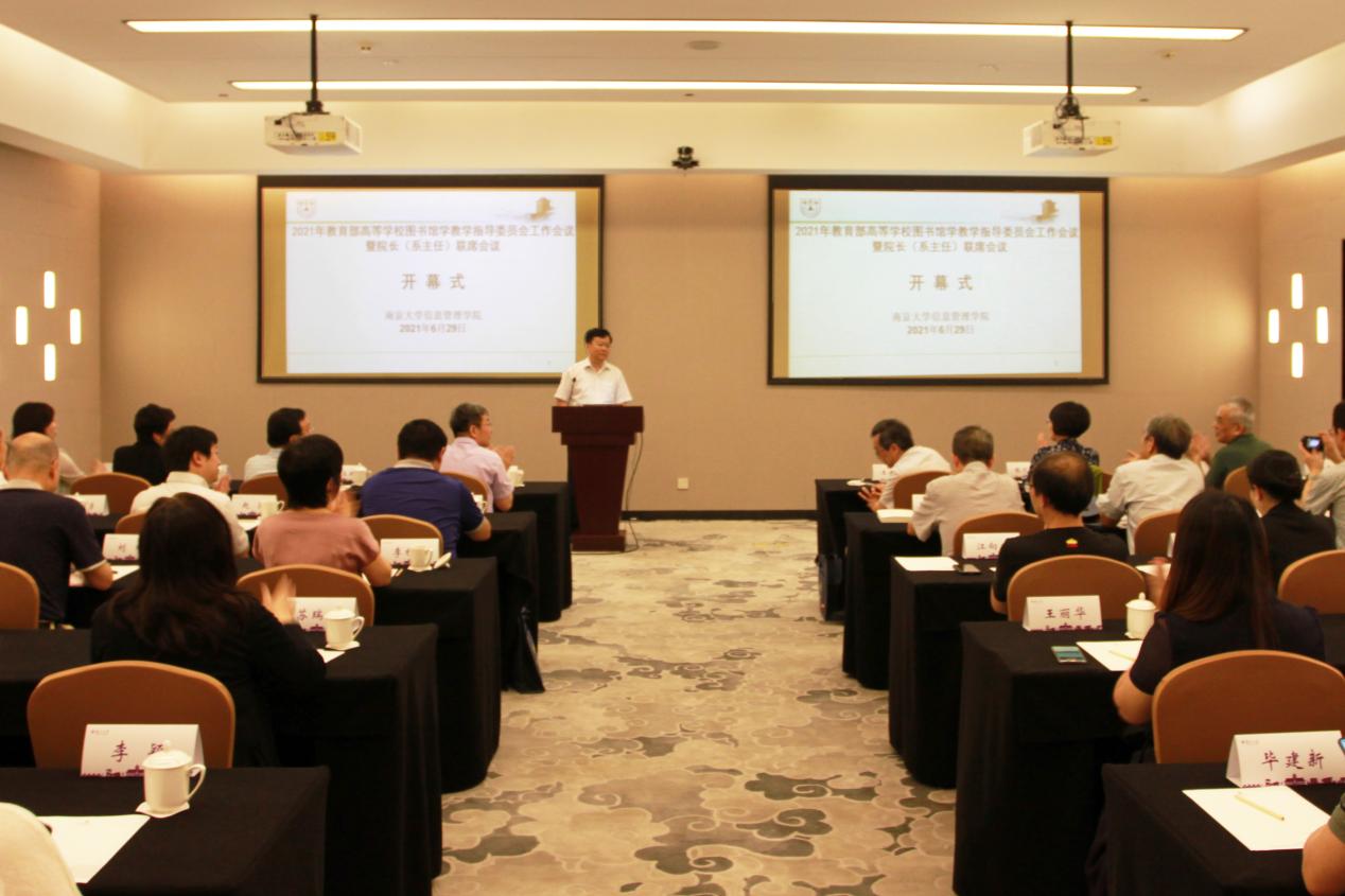 6月29日,由教育部图书馆学专业教学指导委员会主办、南京大学信息管理学院承办的教育部高等学校图书馆学专业教学指导委员会2021年工作会议暨系主任联席会议在南大国际会议中心隆重召开。教育部高等学校图书馆学专业教学指导委员会(以下简称“教指委”)主任、北京大学信息管理系王余光教授,副主任委员南京大学郑建明教授,华中师范大学党委常委、副校长夏立新教授,秘书长、北京大学信息管理系党委书记兼系主任张久珍教授,以及来自全国近30所高校、研究机构的60余名专家学者参会,讨论议题包括图书馆学专业思政课程建设、“新文科”建设与图书馆学人才培养、图书馆学课程改革思路探讨。