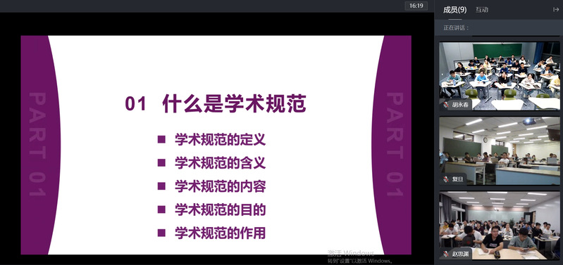 本课程的第一讲由南京大学特聘教授、信息管理学院博士生导师叶继元教授负责。叶继元教授围绕何为学术规范、何为基本规范、基本规范对学术写作的指导作用三个问题,深入浅出、辅以生动案例向五所高校本科生讲授了相关知识。叶继元教授指出:“学术规范不仅仅是科学实验或论文写作中的数据真实、不抄袭、