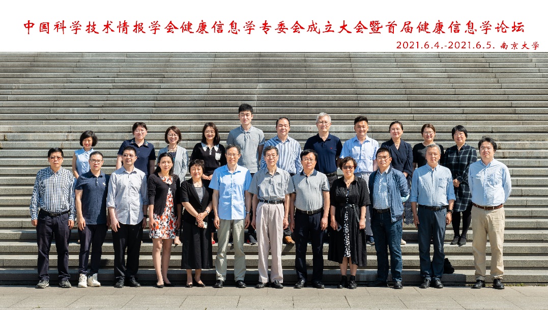 2021年6月5日,由南京大学信息管理学院和中国科技情报学会健康信息学专委会主办,信息管理学院健康信息学研究所、江苏省老年学会信息化专委会和中国老年学与老年医学学会智慧医养分会承办的中国科学技术情报学会健康信息学专委会成立大会暨首届健康信息学论坛在南大国际会议中心举行。因疫情防控需要,本次会议采取定向邀请方式控制会议规模,但仍吸引了来自学界、业界、媒体界的20余位专家学者以及40余位研究生,大家齐聚一堂,共同见证健康信息学专业委员会的成立,探讨健康信息学领域的前沿与学术热点问题。