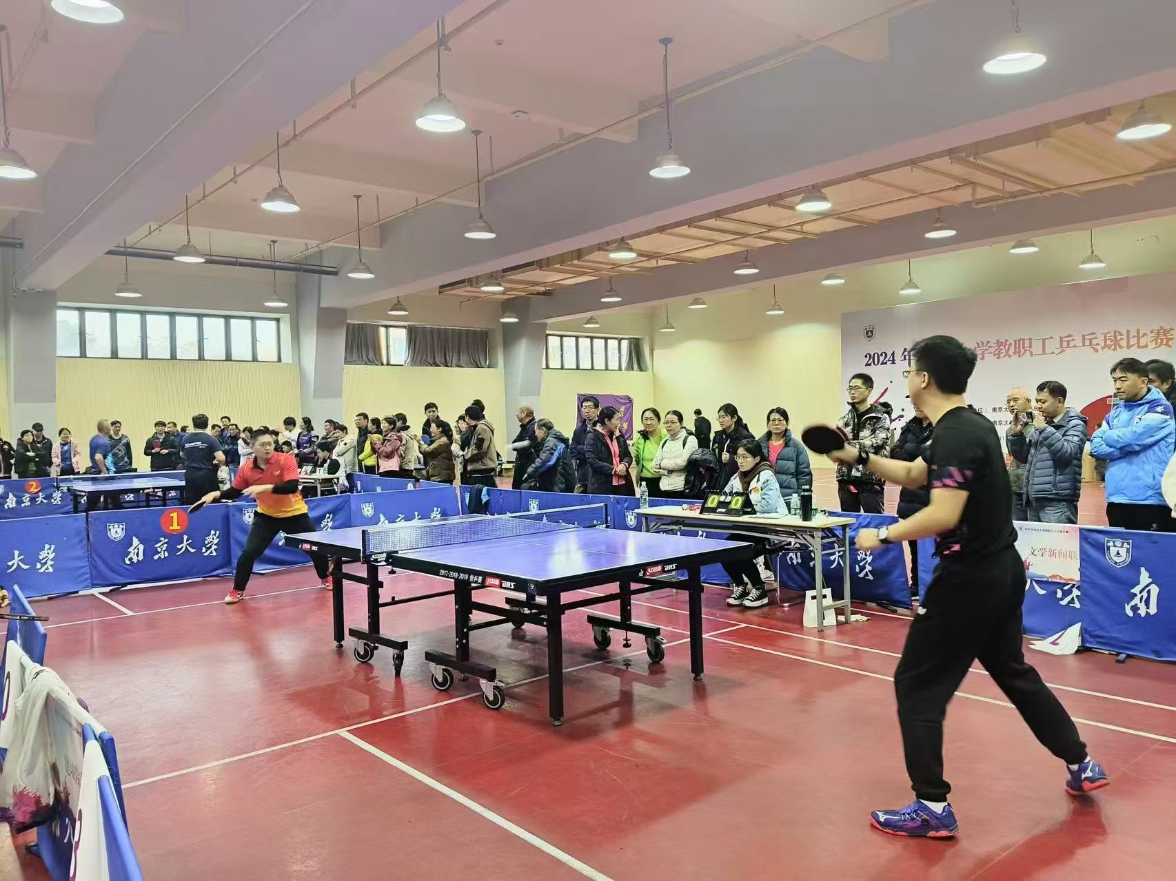 2024年南京大学教职工乒乓球比赛于1130日在仙林校区方肇周体育馆二楼乒乓球馆举行,本年度教职工乒乓球比赛在此激情上演。我院与外院、大学外语部组成联队参赛,在多方领导的关怀和支持下,信管联队(马进军、徐中阳、方卉、徐磊、邵崇忠、张晓红、黄宁康、常晅、于江、张子源)在比赛中表现卓越,一路过关斩将,最终勇夺第三名,重现往昔辉煌。