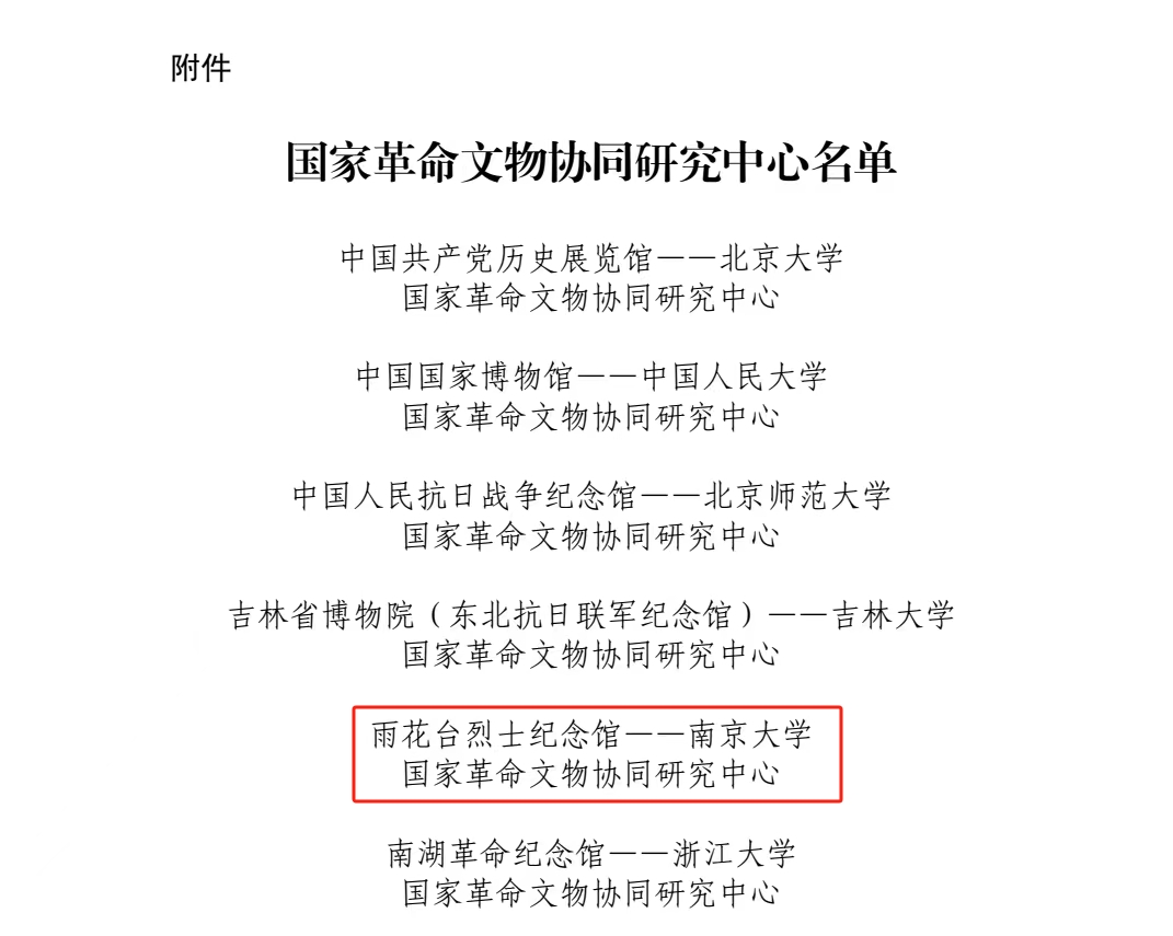 南京大学携手雨花台烈士纪念馆入选首批20个国家革命文物协同研究中心