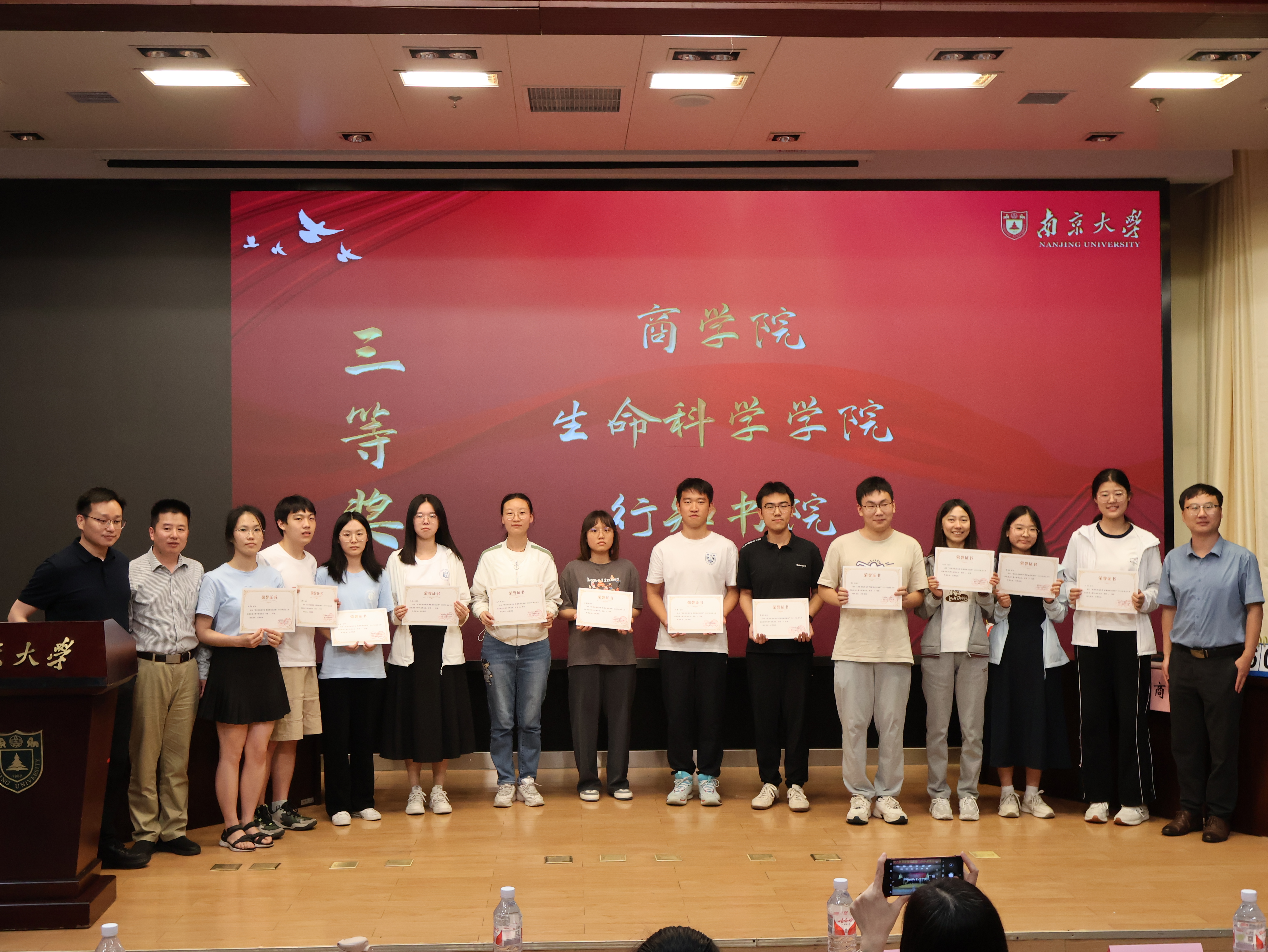 经过两轮比赛的角逐,商学院、生命科学学院、行知书院三支队伍获得团队三等奖,历史学院、秉文书院获得团队二等奖,信息管理学院获得团队一等奖,嘉宾评委为获奖团队颁奖并与所有参赛选手合影留念。